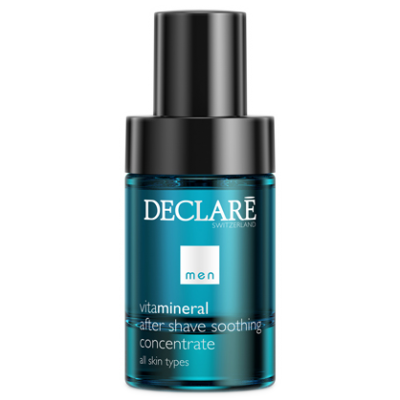 Nowoczesna alternatywa dla tradycyjnych produktów po goleniu. Declaré Men Vita Mineral After Shave Soothing Concentrate nie klei się, szybko się wchłania, daje natychmiastowy efekt złagodzenia. Do stosowania po goleniu w celu intensywnego złagodzenia, natychmiastowej regeneracji i silnego nawilżenia podrażnionej skóry. Declaré Men Vita Mineral After Shave Soothing Concentrate to wysoce skuteczny, szybko działający koncentrat dla silnie podrażnionej skóry doskonale radzi sobie z takimi problemami jak: zaczerwienienie, pieczenie, nierówności oraz łuszczenie się skóry. Naczynia włosowate ulegają wzmocnieniu, podwyższona zostaje ochrona przeciw pękającym naczynkom. Koncentrat działa nawilżająco, chłodząco i odświeżająco. Tym samym bariera ochronna skóry zostaje wzmocniona oraz wrasta jej sprężystość.