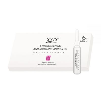 Ampułki SYIS Strengthening And Soothing Ampoules przeznaczone do cery naczynkowej oraz wymagającej regeneracji i nawilżenia. Dzięki zawartości witamin C i B3 oraz troxerutyny wykazują niezwykłe działanie wygładzające i wzmacniające. Poprawiają elastyczność i odporność ścianek naczyń krwionośnych, przyśpieszają procesy regeneracji, wzmacniają i odbudowują uszkodzony płaszcz hydrolipidowy skóry.