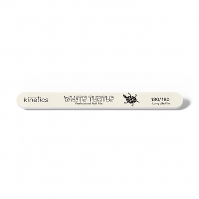 Profesjonalny i trwały pilnik dwustronny Kinetics White Turtle o gradacji 180/180. Idealny do wszystkich rodzajów paznokci.