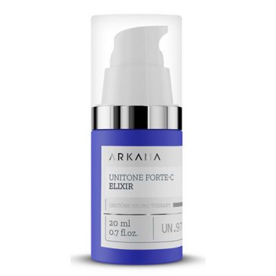 Eliksir Arkana Unitone Force-C Elixir o wysokiej koncentracji witaminy C umieszczonej w sferycznym nośniku, która wyrównuje koloryt, rozjaśnia przebarwienia, jest silnym antyoksydantem i wzmacnia naczynia krwionośne.