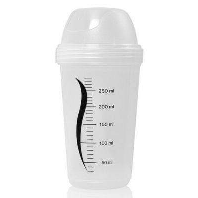 Shaker z twardego tworzywa z podziałką służący do wytrząsania algowych masek shakerowych.