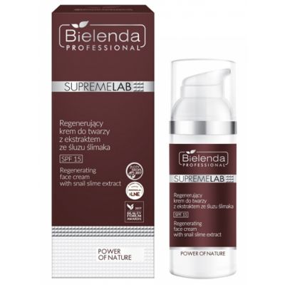 Opis produktu Bielenda Professional SUPREMELAB POWER OF NATURE REGENERATING FACE CREAM WITH SNAIL SLIME EXTRACT Regenerujący krem do twarzy z ekstraktem ze śluzu ślimaka SPF15 (137549)