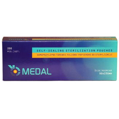Opis produktu Samoprzylepne torebki foliowo-papierowe do sterylizacji (90 mm x 230 mm)