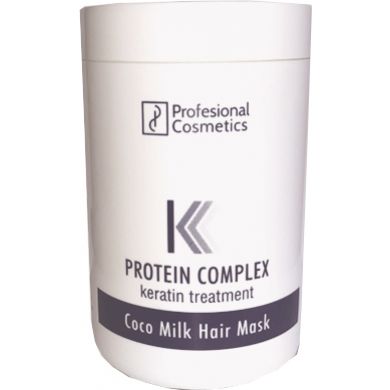 Profesional Cosmetics Protein Treatment Coco Milk Hair Mask to intensywna maska do włosów suchych i zniszczonych z jedwabiem i keratyną oraz aromatem mleczka kokosowego. Maska opracowana specjalnie na polski rynek do włosów zniszczonych, wzbogacona w proteiny jedwabiu oraz keratynę. Nawilża, regeneruje, oraz odnawia suche włosy. Pozostawia je gładkie miękkie z większą objętością. Ułatwia rozczesywanie. Polecana do stosowania pod kompres.