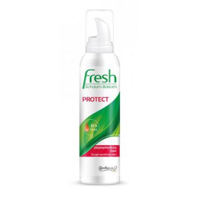 Balsam w piance do skóry zrogowaciałej i popękanej z 10% mocznikiem Camillen60 Fresh Schaum-Balsam Protect o poczwórnym działaniu: zapobiega powstawaniu grzybicy stóp, zmniejsza wydzielanie się potu, neutralizuje nieprzyjemny zapach i odświeża. Zawarty w balsamie kwas undecylenowy i farnesol skutecznie zapobiegają tworzeniu się grzybicy i zmniejszają potliwość. Ten intensywnie pielegnujacy balsam oprócz kompleksu Fresh Up i 10% mocznika zawiera również masło shea. Regularne stosowanie pianki Camillen60 Fresh Schaum-Balsam Protect zmniejsza tworzenie się zrogowaceń i zapobiega występowaniu popękanych, chropowatych partii skóry. Camillen60 Fresh Schaum-Balsam Protect nie tłuści się, szybko się wchłania i chroni skórę przed wysuszeniem. Produkt jest bardzo wydajny, wystarcz na około 200 apilkacji.