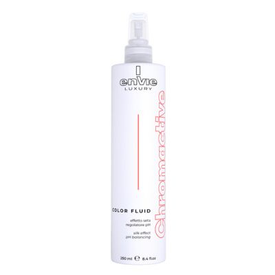 Odżywka ochronna Envie Chromactive Color Fluid przeznaczona do włosów farbowanych oraz po wszelkich zabiegach fryzjerskich. Posiada bardzo lekką formułe przez co nie obciąża włosów. Odżywka Envie Chromactive Color Fluid pielęgnuje włosy farbowane, dogłębnie je nawilża, wzmacnia kolor, nadaje włosom blasku oraz nadaje im objętości. Ponadto spray w swym składzie został wzbogacony o ekstrakt z granatu, który dogłębnie odbudowuje włókno włosa, utrwala kolor oraz sprawia, że włosy są sypkie i odżywione. Kwaśne pH odżywki zamyka łuskę włosa, zapobiegając wypłukiwanie się koloru. Po użyciu Envie Chromactive Color Fluid włosy stają się lśniące, sypkie, pełne objętości.