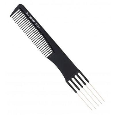 Profesjonalny grzebień do włosów BlaCKomB do tapirowania włosów z metalowym widelcem został wykonany z wytrzymałego włókna węglowego. Grzebień posiada specjalne rozstawienie zębów dzięki czemu bardzo łatwo się nim tapiruje. Ponadto grzebień ma metalowy widelec pozwalający na bezproblemowe dzielenie pasm włosów co znacznie przyśpiesza prace w salonie. Grzebienie do włosów BlaCKomB to doskonały wybór dla wszystkich którzy cenią sobie wysoką jakość w przystępnej cenie, są odporne na ciepło, bardzo wytrzymałe, mają zaokrąglone ząbki dzięki czemu są całkowicie bezpieczne dla skóry głowy. Antystatyczny. Wymiary: 22 cm x 2,8 cm.