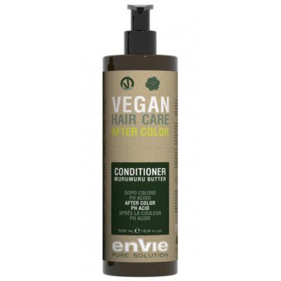 Wegańska odżywka Envie Vegan After Color pH Acid Conditioner zaprojektowana specjalnie do włosów farbowanych, o kwaśnym pH. Odżywka została wzbogacona o wiele naturalnych składników oraz olejków takich jak ekstrakt z masła murumuru, olejku daktylowego oraz witaminy A, które pielęgnują włosy farbowane, dogłębnie je nawilżają oraz sprawiają że kolor zostaje wzmocniony a jego barwa staję się nasycona oraz pełna blasku.