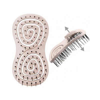 Kompaktowa szczotka do włosów BlaCKomB wykonana w 100% z odnawialnej pszenicy, jest świadomym wyborem dla tych, którzy szukają produktów przyjaznych dla środowiska. Każdy element szczotki jest zaprojektowany z myślą o minimalnym wpływie na środowisko. Pszenica, jako materiał bazowy, jest nie tylko biodegradowalna, ale także wymaga mniej zasobów w produkcji w porównaniu z tradycyjnymi tworzywami sztucznymi. Wybierając tę szczotkę, dokonujesz wyboru na rzecz mniejszego śladu węglowego i mniejszej ilości odpadów. Dzięki innowacyjnemu kształtowi, szczotka idealnie dopasowuje się do głowy, co umożliwia równomierne i efektywne rozczesywanie włosów. Dzięki starannie zaprojektowanym, miękkim włosiom zakończonych kulką, nasza szczotka masuje skórę głowy podczas używania, promując zdrowy wzrost włosów i zapobiegając ich łamaniu. Doskonale sprawdza się dla wszystkich typów i długości włosów, ułatwiając codzienną pielęgnację zarówno włosów prostych, jak i kręconych. Lekka i ergonomiczna rękojeść zapewnia komfort i łatwość użycia, a jej naturalny, ciepły odcień wprowadza do Twojej łazienki kawałek natury.