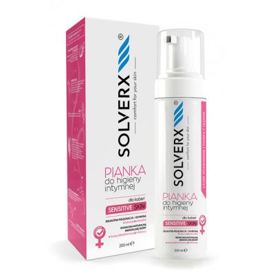 Delikatna pianka do codziennej higieny i pielęgnacji okolic intymnych Solverx Sensitive Skin Foam For Intimate Hygiene. Bazuje na naturalnych składnikach myjących z kokosa, które łagodnie myją najwrażliwsze części kobiecego ciała oraz przywracają równowagę pH skóry. Unikalny skład pianki wykorzystuje cenne właściwości kwasów: mlekowego i laktobionowego, które wzmacniają naturalną mikroflorę, zapobiegając infekcjom i stanom zapalnym. Pantenol oraz alantoina wspomagają regenerację podrażnionego i zaczerwienionego naskórka, przywracając skórze komfort. Dodatkowo betaina, ekstrakty roślinne (z lukrecji i krwawnika) dbają o utrzymanie odpowiedniego poziomu nawilżenia, zapobiegają wysuszeniu śluzówki, skutecznie koją podrażnienia śluzówki, zmniejszając uczucie świądu i pieczenia. Natomiast oleje lniany i z wiesiołka odżywiają i regenerują skórę. Solverx Sensitive Skin Foam For Intimate Hygiene zapewnia długotrwałe uczucie czystości i świeżości.