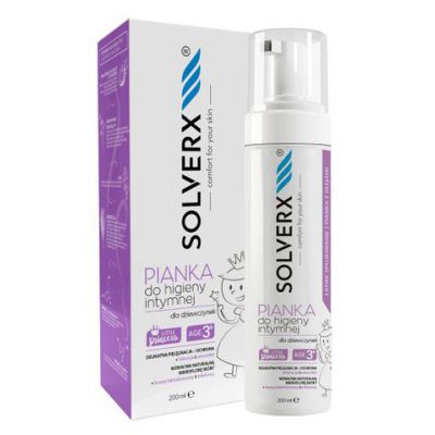 Solverx Baby Skin Intimate Hygiene Foam For Girls do codziennej pielęgnacji i higieny intymnej dla dziewczynek od 3 roku życia. StworzonA na bazie bardzo delikatnych składników myjących pozyskanych z kokosa. Unikalny skład pianki wykorzystuje cenne właściwości kwasów: mlekowego i laktobionowego, które wzmacniają naturalną mikroflorę, chroniąc przed infekcjami. Pantenol oraz alantoina wspomagają regenerację podrażnionego i zaczerwienionego naskórka, przywracając skórze komfort. Specjalnie wyselekcjonowane składniki roślinne (z lukrecji i krwawnika) dbają o utrzymanie odpowiedniego poziomu nawilżenia, zapobiegają wysuszeniu śluzówki, skutecznie koją podrażnienia, zmniejszając uczucie świądu i pieczenia. Natomiast oleje lniany i z wiesiołka odżywiają i regenerują skórę.