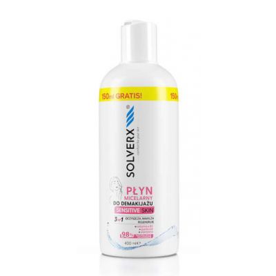Opis produktu Solverx SENSITIVE SKIN MICELLAR FLUID FOR MAKE-UP REMOVAL Płyn micelarny do demakijażu