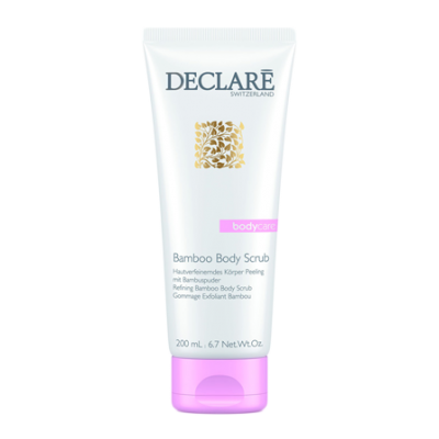 Bambusowy peeling do ciała Declare Body Care Bamboo Body Scrub wygładza skórę usuwając zrogowaciały naskórek za pomocą delikatnie złuszczającego pudru bambusowego. Skóra staje się niezwykle miękka, gładka, promienna i rozjaśniona.  Peeling zapewnia uczucie wspaniale odświeżonej i jedwabiście miękkiej skóry.