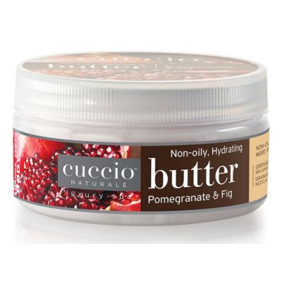Nawilżające masło do dłoni, stóp i ciała Cuccio Pomegranate & Fig Butter z wyciągiem z granatów i fig. Tworzy na skórze barierę ochronną zabezpieczającą przed działaniem czynników zewnętrznych. Doskonale i głęboko nawilża skórę i zapewnia jej niezwykle świeży i promienny wygląd. Cuccio Pomegranate & Fig Butter nawilża, odżywia i odbudowuje naturalną warstwę tłuszczową skóry, zapobiega jej pękaniu. Polecane dla osób korzystających z solarium. Ta intensywnie nawilżająca kuracja pozostawia jedwabistą i gładką skórę.
