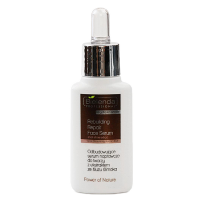 Opis produktu Bielenda Professional REBUILDING REPAIR FACE SERUM WITH SNAIL SMILE EXTRACT Odbudowujące serum naprawcze do twarzy z ekstraktem ze śluzu ślimaka